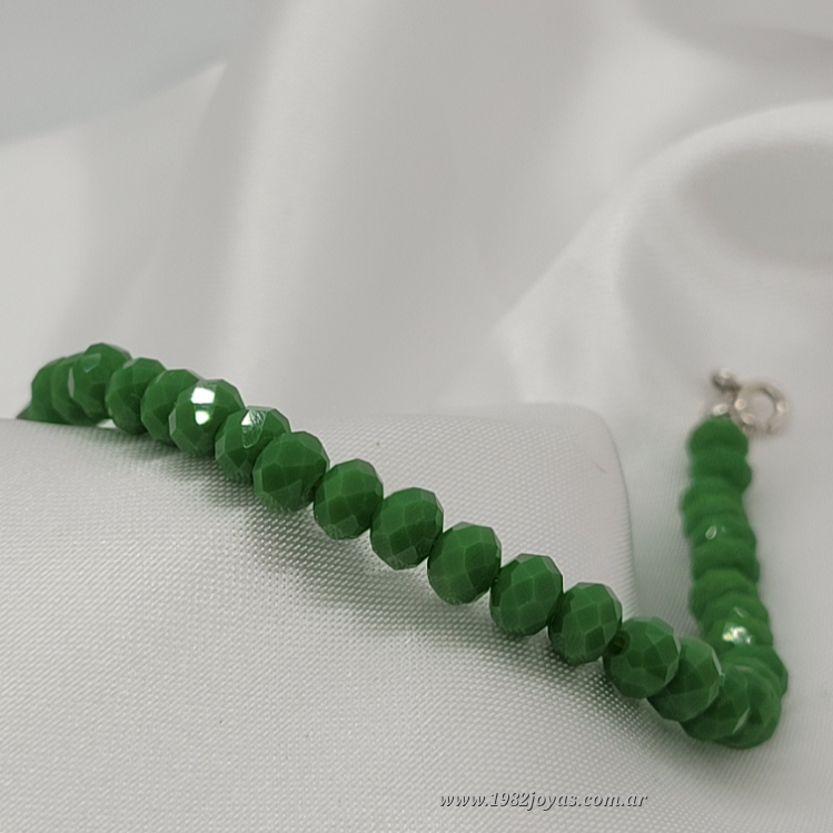 Pulsera Cristal de roca 6mm color verde mate 18,5cm largo Cierre y bolitas de Plata en extremos