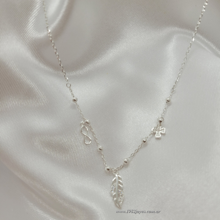 Choker con bolitas, dije infinito,cruz y hoja.
